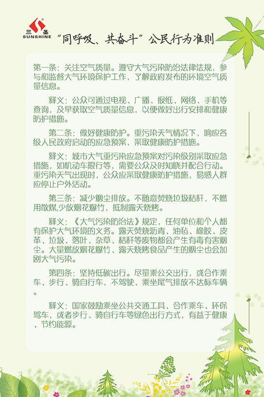 今年“三圣環保日”的主題為“三圣助力大環保,員工踐行小環保”,我們的口號是:“踐行環保?從我們身邊的小事做起”。