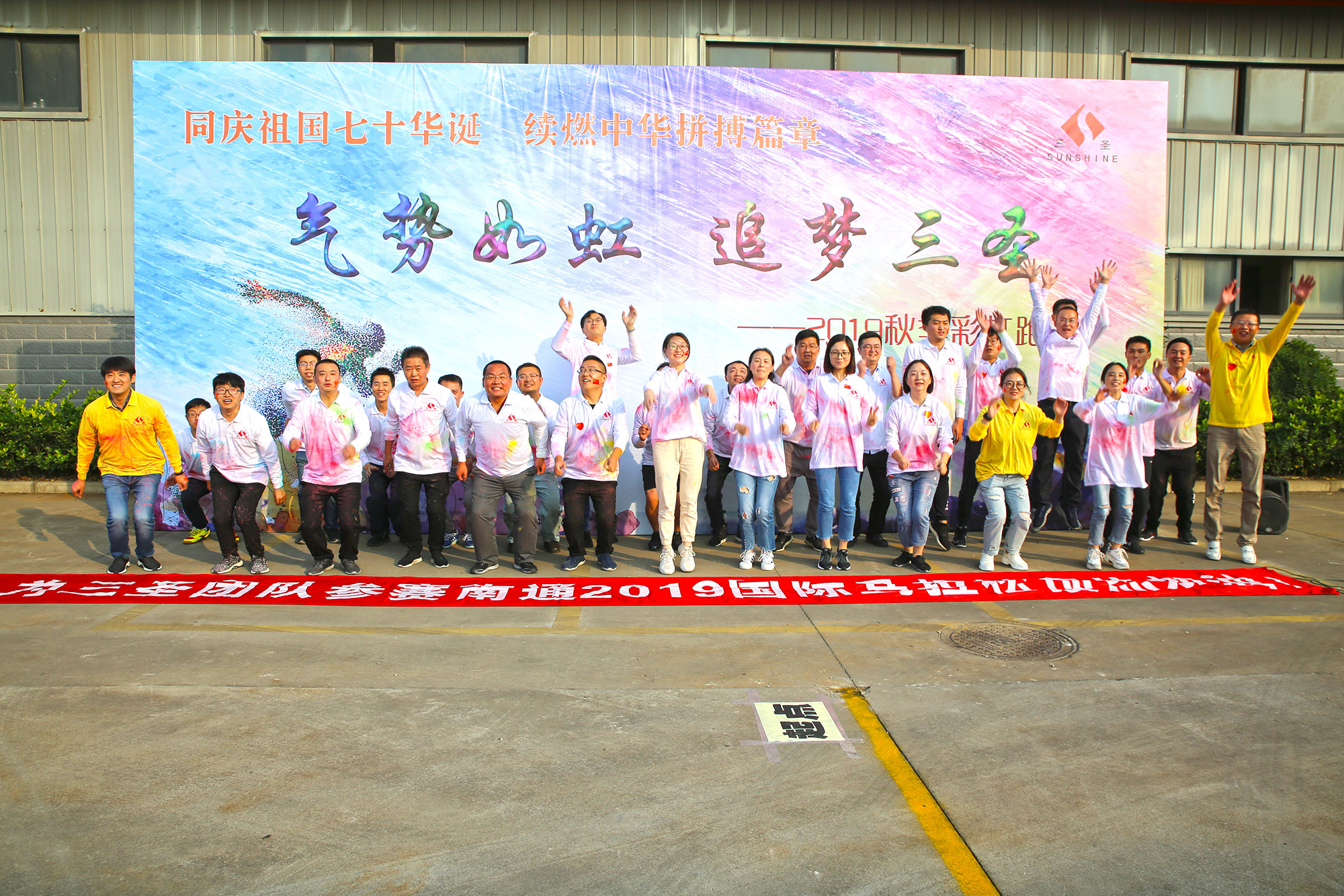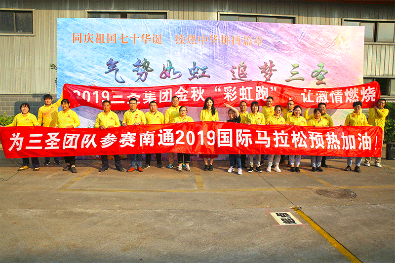 喜迎祖國七十華誕&預熱三圣團隊亮相南通國際馬拉松賽……三圣集團2019金秋“彩虹跑”絢麗呈現。