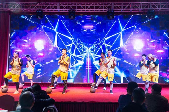本次年會由公司內部三個部門聯合承辦,所有節目均由承辦部門自編、自導、自演,充分展現了三圣人多才多藝的綜合素質和自信向上的精神面貌。帥氣十足的佳佳和優雅靚麗的雙雙,這一對主持搭檔帶給大家耳目一新的開場。隨后上演的一段兵乓球熒光舞,科技感十足的服裝、絢麗的七彩光,配上搞笑夸張的肢體動作,子公司艾伯納三圣的節目征服了在場觀眾。接下來的“灌籃高手”全明星秀,三圣籃球社團的部分成員們,在葛教練的指揮下,展現了酷炫嫻熟的運球技藝和團結默契的球隊配合。