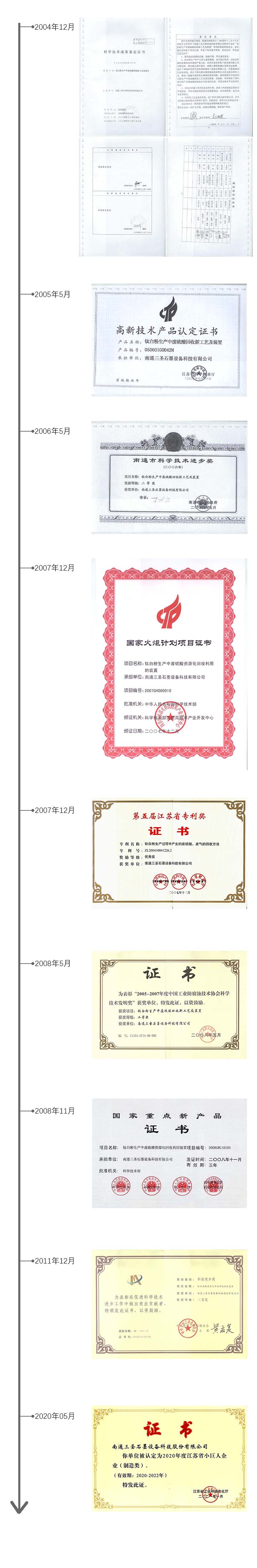 南通三圣所有這些榮譽的取得,離不開長期堅持的以科技創新引領企業發展的經營戰略。企業從2008年起連續5次被認定為國家高新技術企業,建有江蘇省工業廢酸資源回收利用工程技術研究中心,建有國家博士后科研工作站,建有上海交通大學研究生實習實踐基地。