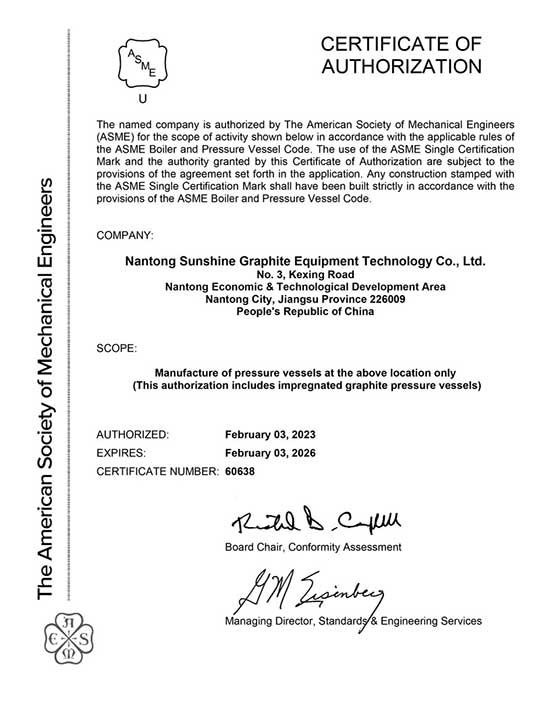 未來,南通三圣將以ASME “U”鋼印認證為契機,全面提升公司的技術實力和市場影響力。同時,公司將繼續致力于為全球客戶提供高效、環保、創新的石墨設備解決方案,為推動全球機械工程領域的可持續發展做出貢獻。
