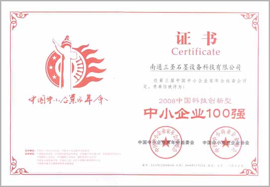經(jīng)第三界中國(guó)中小企業(yè)家年會(huì)組委會(huì)評(píng)定,我公司被評(píng)定為:2008中國(guó)科技創(chuàng)新型中小企業(yè)100強(qiáng),并頒發(fā)了證書(shū)和牌匾.