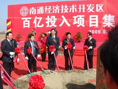 3月20日,三圣擴建(募投)項目暨三圣工業園建設項目,參加南通經濟技術開發區“百億投入項目集中開工儀式”。中共南通市委副書記、南通市市長丁大衛、副市長沈振新、南通開發區黨工委書記陳德新、管委會主任葛亮等市、區主要領導出席開工儀式。 三圣董事長馮圣君與市區主要領導為開工儀式奠基。
