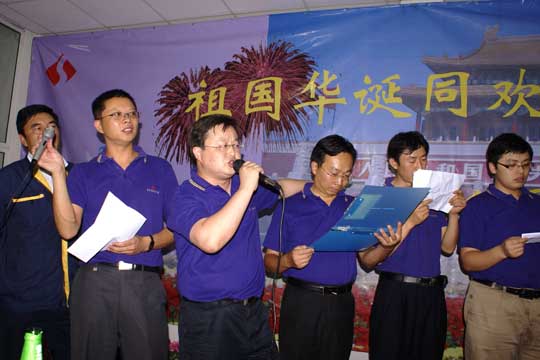 9月22日,全體三圣人歡聚一堂,同慶祖國華誕,共迎中秋佳節。感人至深的手舞《感恩的心》、詼諧幽默的小品《三圣家庭》、激情澎湃的詩朗誦《我的祖國》、獨樹一幟的三句半《話說三圣》以及相聲、快板書等一個個三圣人自編自演的節目集中體現了三圣大家庭的企業文化精髓,同時表達了對祖國母親的深深祝福。由三圣人自己點燃放飛的69盞祝愿燈將聯歡會推向了高潮,大家祝愿三圣事業六六大順,三圣好運長長久久。董事長帶領高管團隊合唱的一曲《朋友》充分彰顯了三圣管理層的超強凝聚力和戰斗力。晚會在大合唱《同一首歌》的歌聲中圓滿結束。