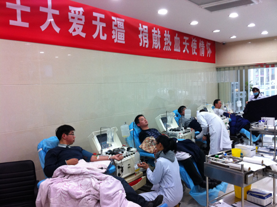 1月19日,患病同事趙亞東的家屬向公司發(fā)出了緊急求援,希望能有同事為趙亞東定向捐獻成分血。短短的半小時,質(zhì)檢部劉小冬、朱浩,國際部石玉成,事務(wù)部嚴(yán)建新在殷總的帶領(lǐng)之下迅速趕到市血站下屬的愛心獻血屋獻血。雖然遺憾的是,由于捐獻成分血對捐獻人的各項身體指標(biāo)要求較高,五人均未達到要求,但他們的善舉仍然讓趙亞東的家屬非常感動。與此同時,公司、工會、愛心基金會聯(lián)合發(fā)出了為趙亞東獻血倡議,率先得知消息的科室員工積極響應(yīng),紛紛簽字響應(yīng)獻血倡議,稍后得知消息的生產(chǎn)部員工也是積極響應(yīng),紛紛表示愿意為趙亞東獻血,甚至考慮到春節(jié)期間的用血。