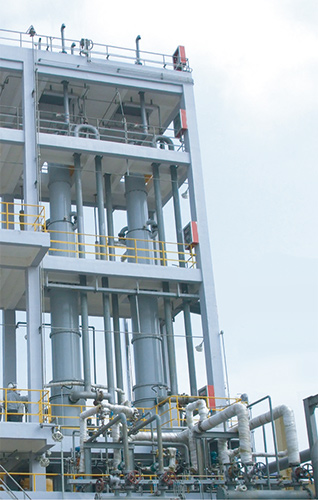 Cl2、H2合成、吸收、冷卻,副產尾氣再處理四個工藝程序合并在一臺設備內完成。